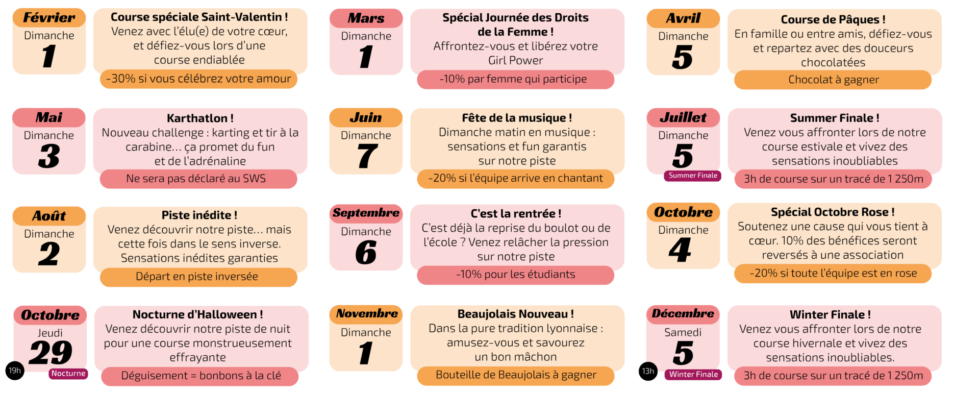 Faite partie du Trophée Karting de Lyon, c’est le rendez-vous karting à ne pas rater, tous les premiers dimanche du mois !